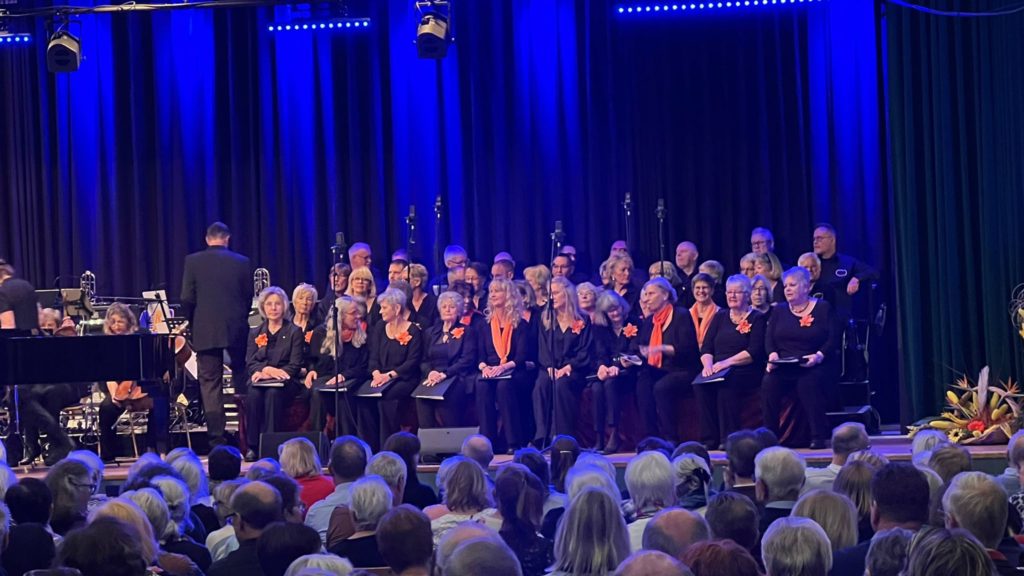 Das Konzert war ein voller Erfolg! Schon bei dem ersten Lied „Die Welt braucht Lieder“ sprang der Funke zum Publikum herüber. Nach einigen tiefsinnigen, aber trotz ihres Alters hochaktuellen Liedern, riss es die Leute dann von den Stühlen und sie tanzten teilweise sogar zu den bekannten Evergreens mit! Das hochkarätig besetzte Orchester spielte wie aus einem Guss, als hätten sie schon ewig und nicht nur drei Mal zusammen gespielt und glänzte mit tollen Soloeinlagen, Marco brillierte am Flügel und am Mikrofon und die 3 Chöre gaben einmal mehr ihr Allerbestes! Immer wieder kann es zu „standing ovations“ und als Eddie Leo Schruff eine Einlage mit „New York, New York“ gab, war das Publikum nicht mehr zu halten.